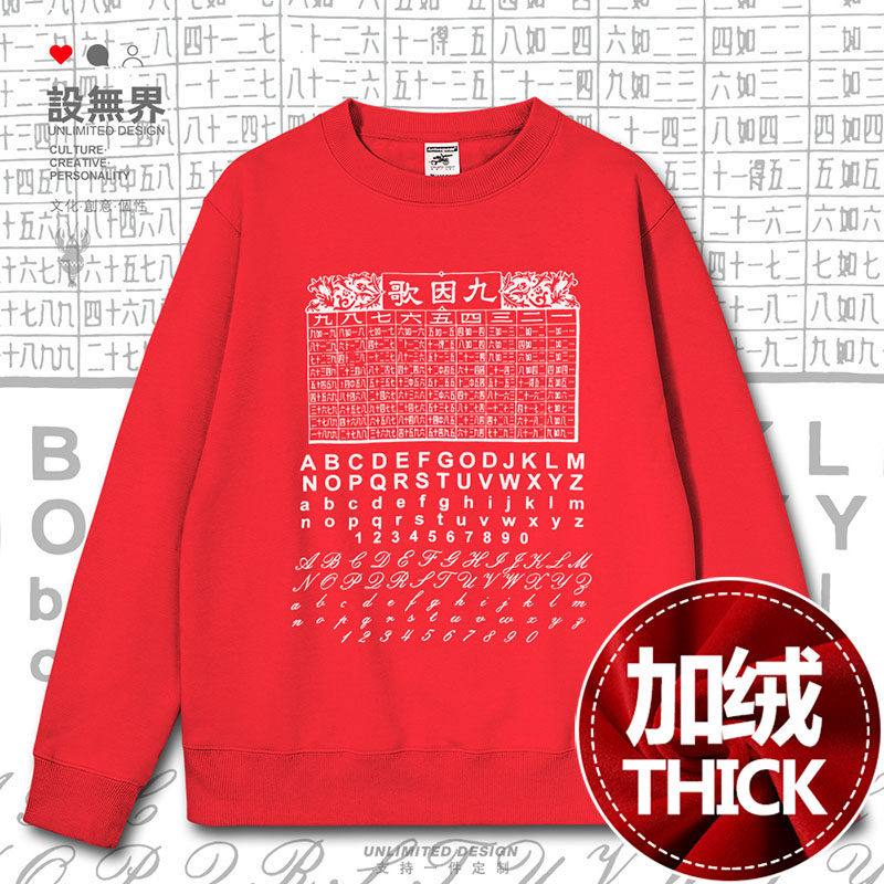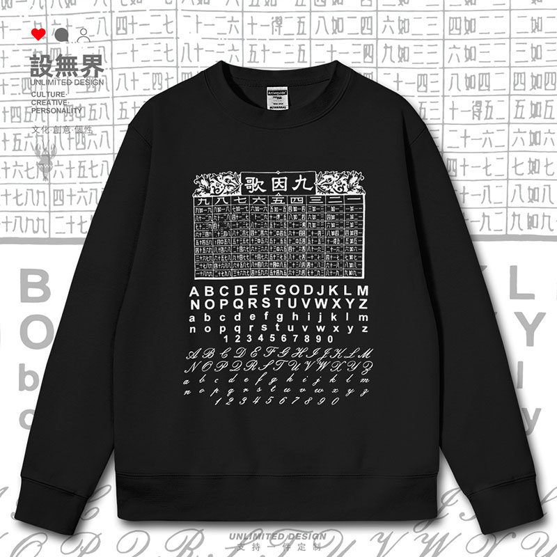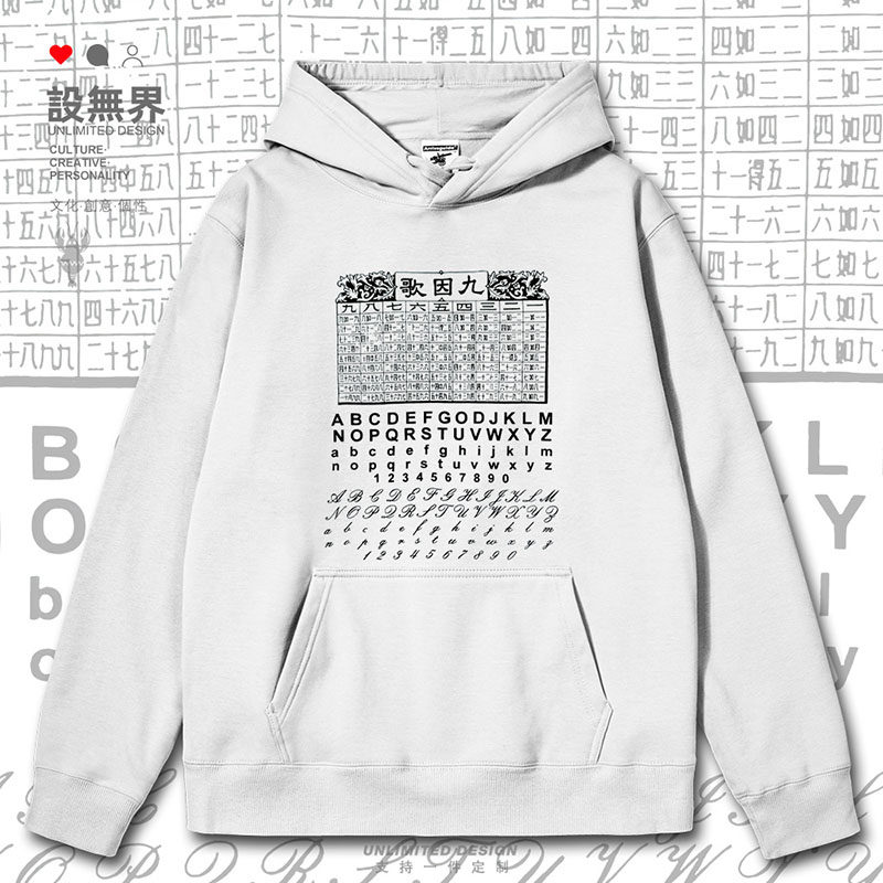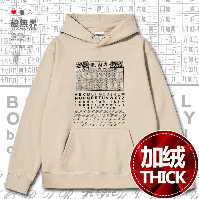 📚 广东粤语文化九因歌乘數表口诀创意连帽卫衣男女帽衫0018设 无界