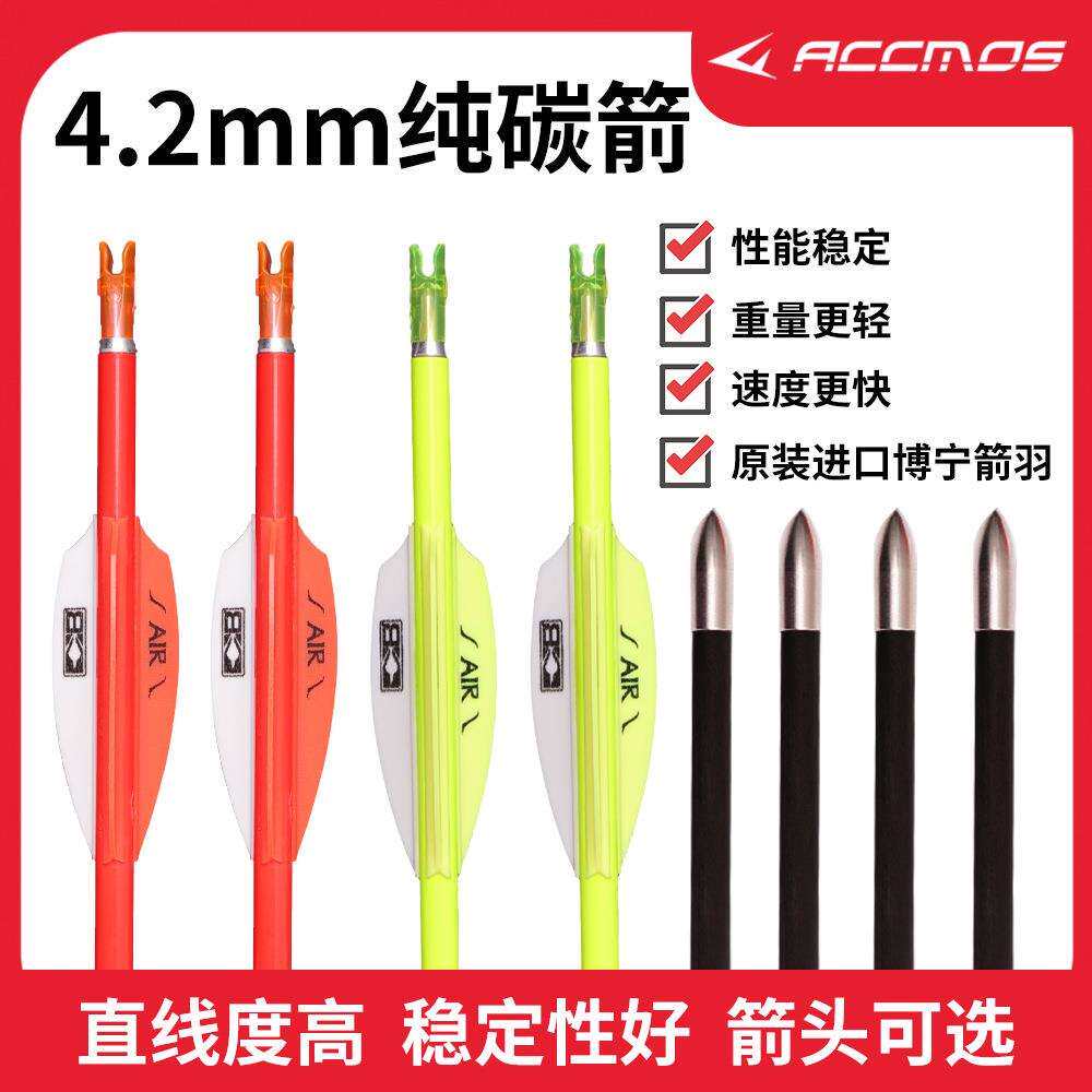 📚 进口博宁2英寸盾柳叶羽荧光彩色纯碳箭出口装4.2内径竞技比赛反曲