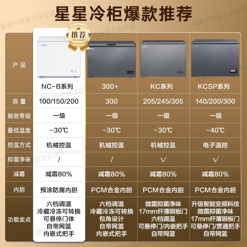 📚 星星冰柜商用100/200/300升L家用小型冷藏冷冻柜两用保鲜超市官方