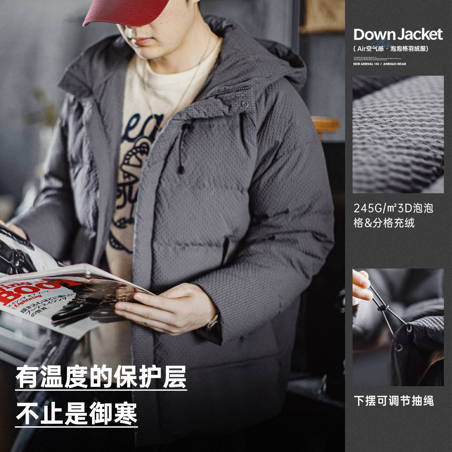 📚 马登工装美式泡泡纱羽绒服90白鸭绒高蓬松度肌理感连帽外套男秋冬