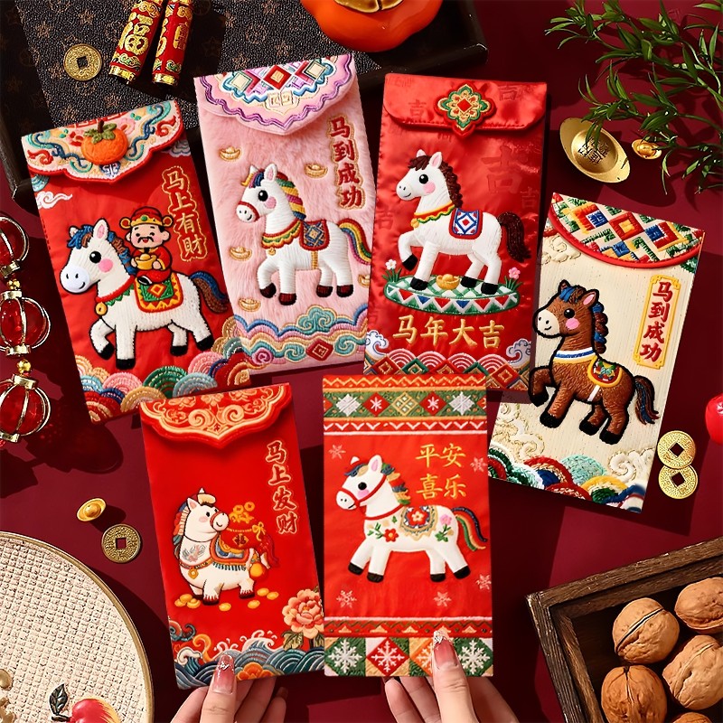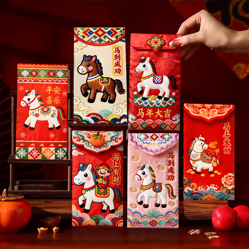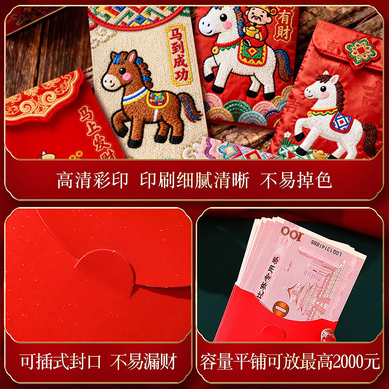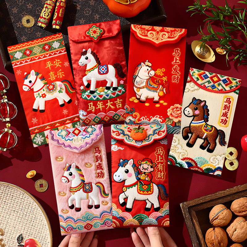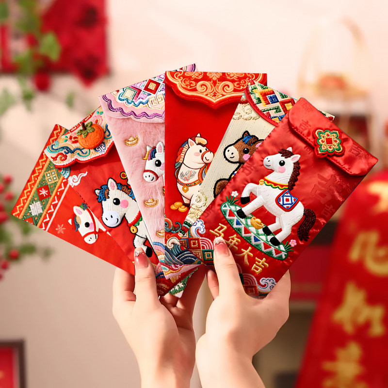📚 红包2026马年红包袋通用新年压岁包卡通利是封个性创意仿刺绣立体