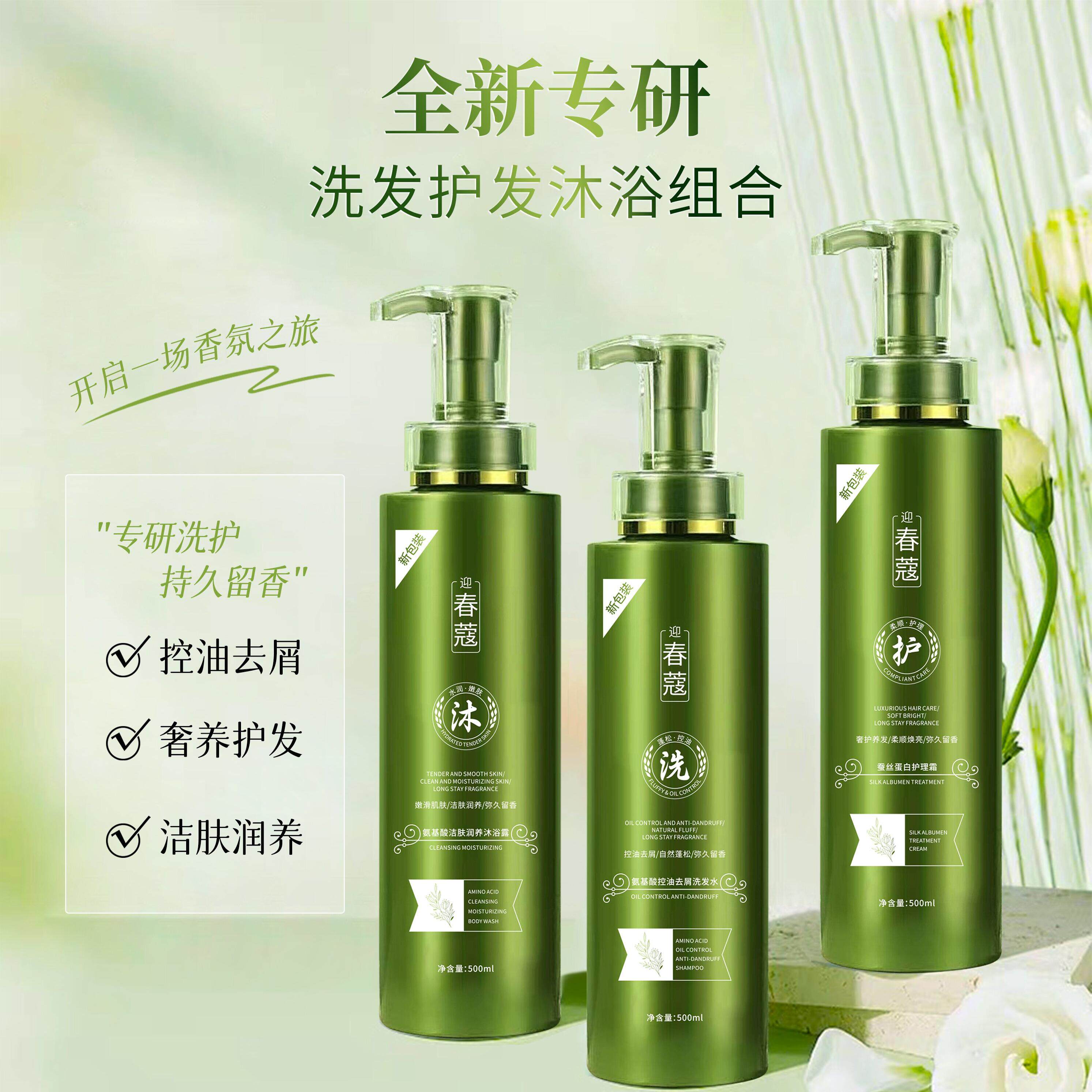 📚 正品迎春蔻洗发水控油去屑止痒蓬松柔顺氨基酸持久留香洗护套装