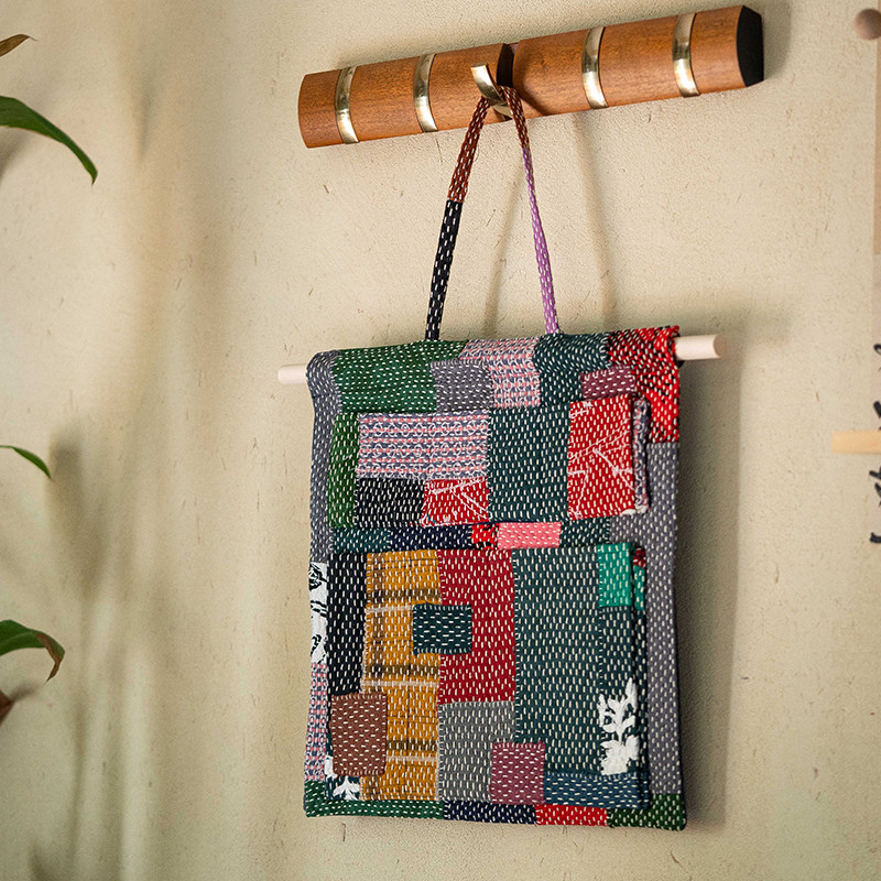 📚 钟声刺绣 手工拼布密密缝收纳墙挂 家庭装饰挂件收纳袋 茶道零配