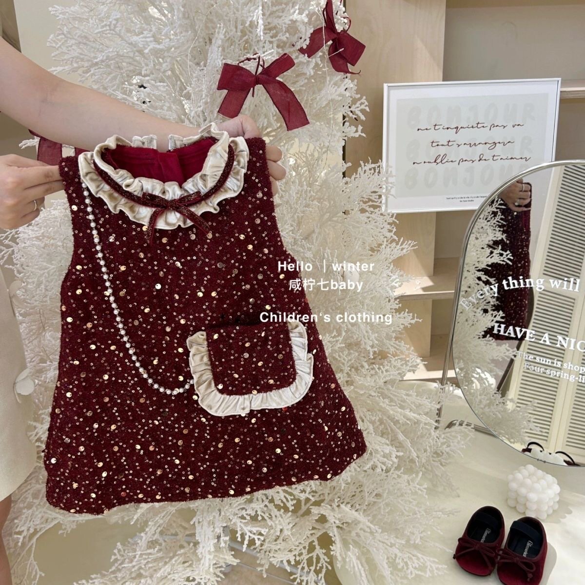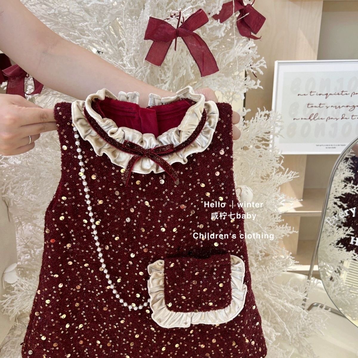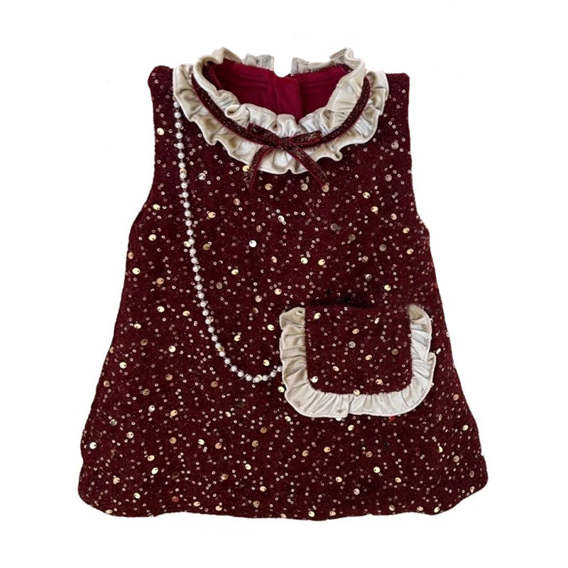 📚 新中式女童加绒背心裙圣诞节新款周岁礼服小童宝宝洋气公主裙冬装
