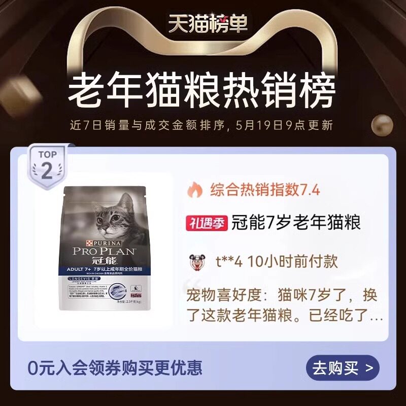 📚 冠能老年期猫粮2.5kg7岁大龄猫咪关节鸡肉营养呵护成年猫咪26.4