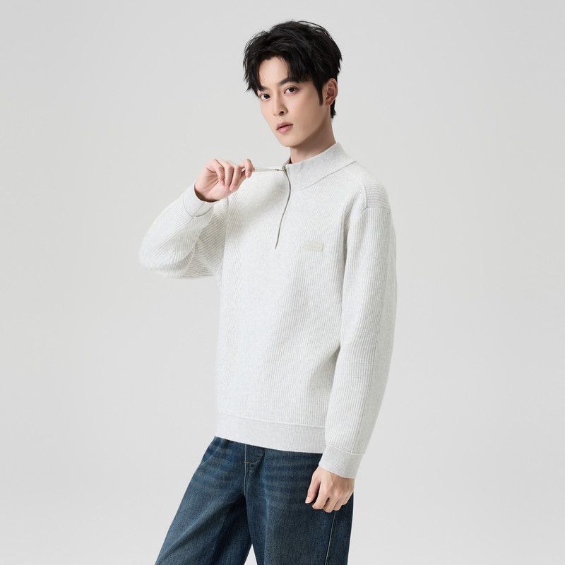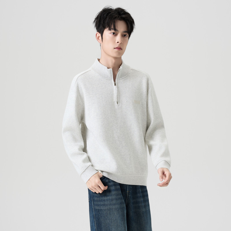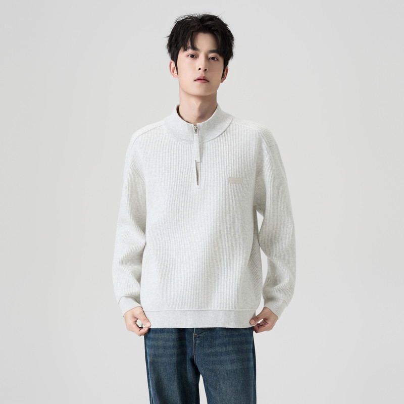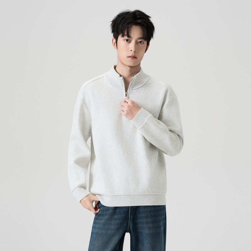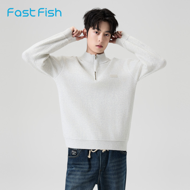 📚 快鱼毛衣男2025新款冬季立领半拉链针织衫宽松舒适显瘦男装上衣