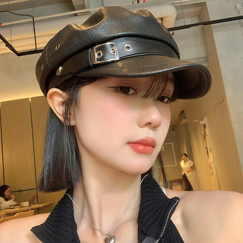 📚 韩系复古PU皮质贝雷帽女夏季小众气质文艺百搭英伦显脸小街头帽子