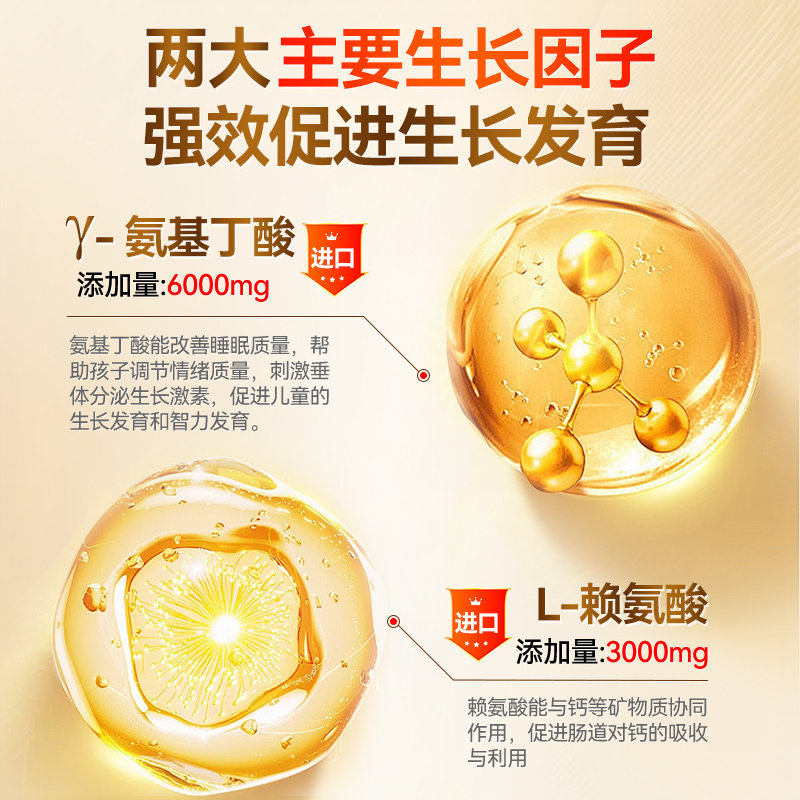 📚 黄金搭档氨基丁酸y赖氨酸儿童青少年生长素钙片维生素正品咀嚼片