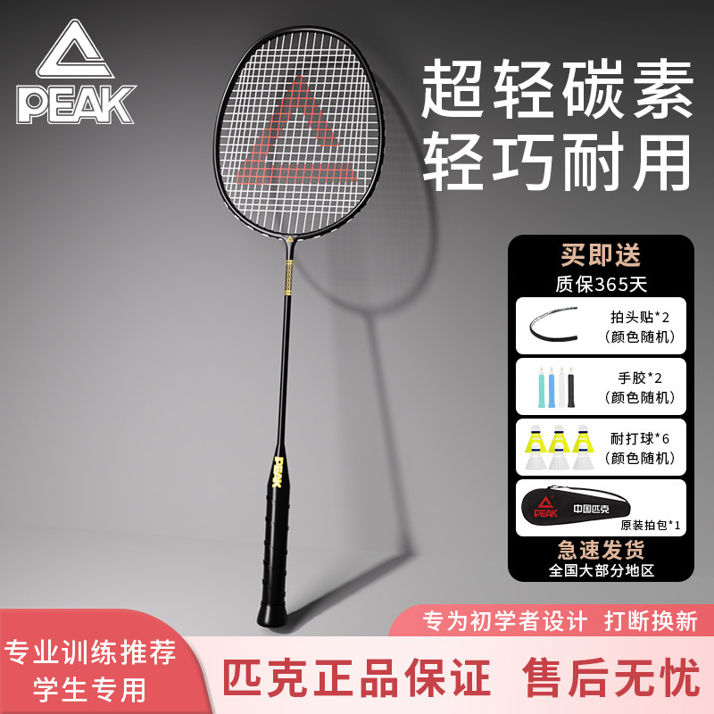 📚 匹克羽毛球拍正品复合碳素纤维超轻单双拍儿童男女专业耐打训练装