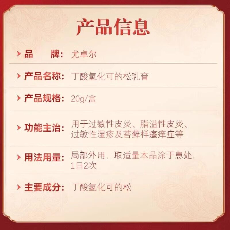 📚 尤卓尔丁酸氢化可的松乳膏正品20g过敏性湿疹过敏性皮炎瘙痒症