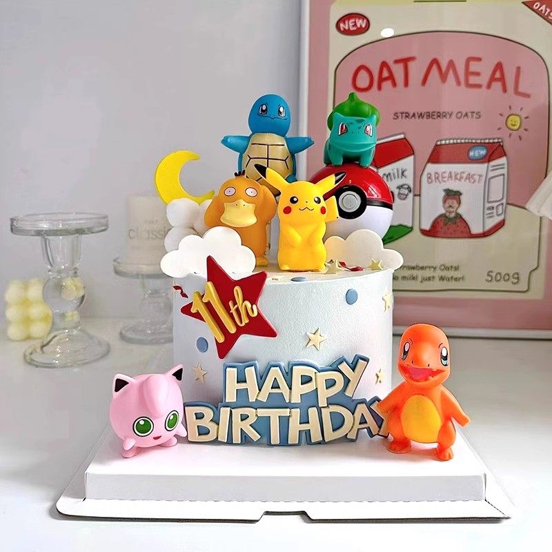 📚 网红宝可梦皮卡丘精灵球生日蛋糕装饰摆件神奇宝贝烘焙甜品台装扮