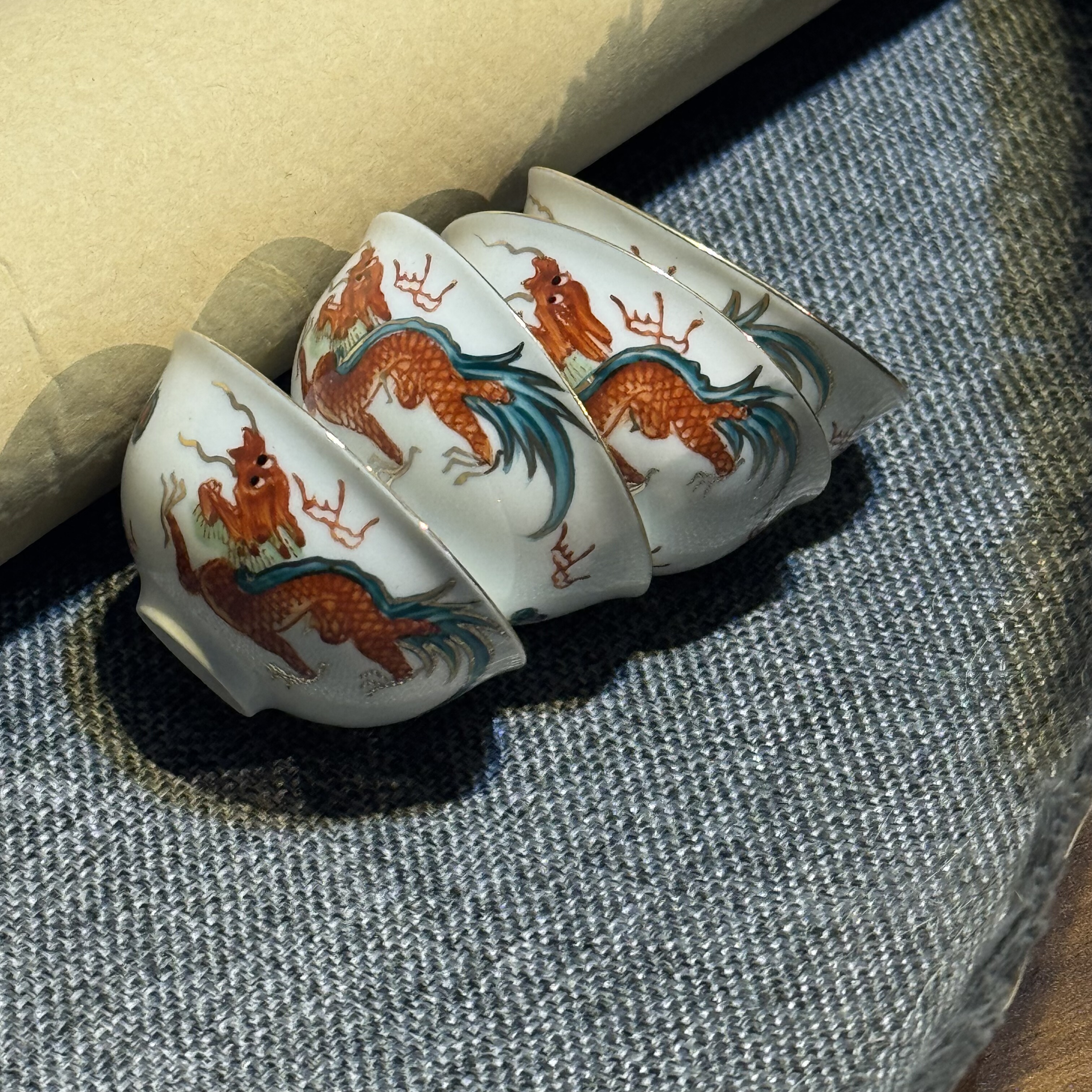 💥正原泰线版14K金粉手绘金尾龙回流礼佛枫溪窑定制款功夫茶蛋壳杯!券后价38元,超值入手!💖