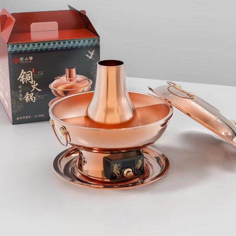 📚 京二爷紫铜鸳鸯锅电火锅不粘锅大容量家用碳电两用
