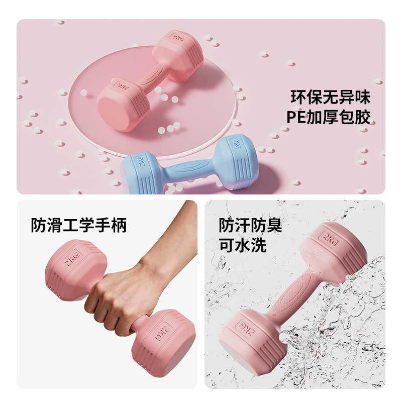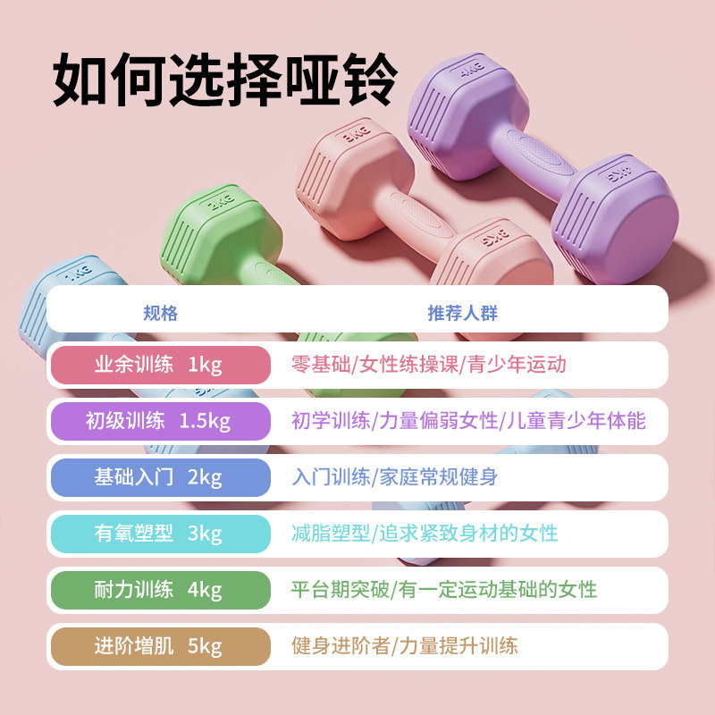 📚 慧博哑铃女士健身家用器材儿童瑜伽女壶铃式练臂肌包胶男士小哑铃