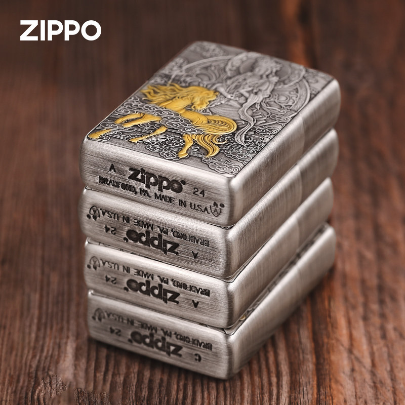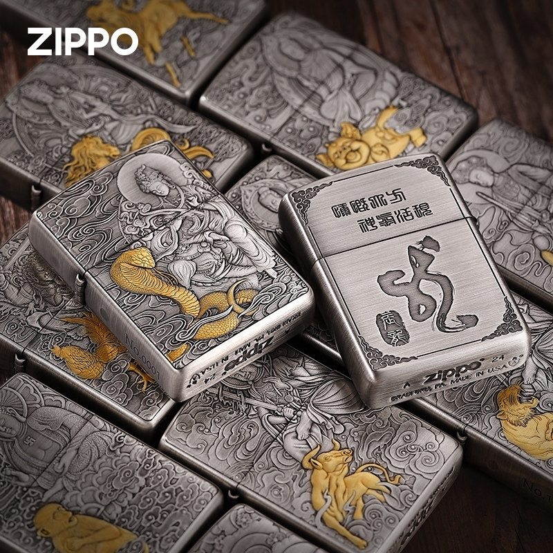 📚 zippo打火机双色十二生肖官方正版熏银盔甲煤油防风男士生日礼物
