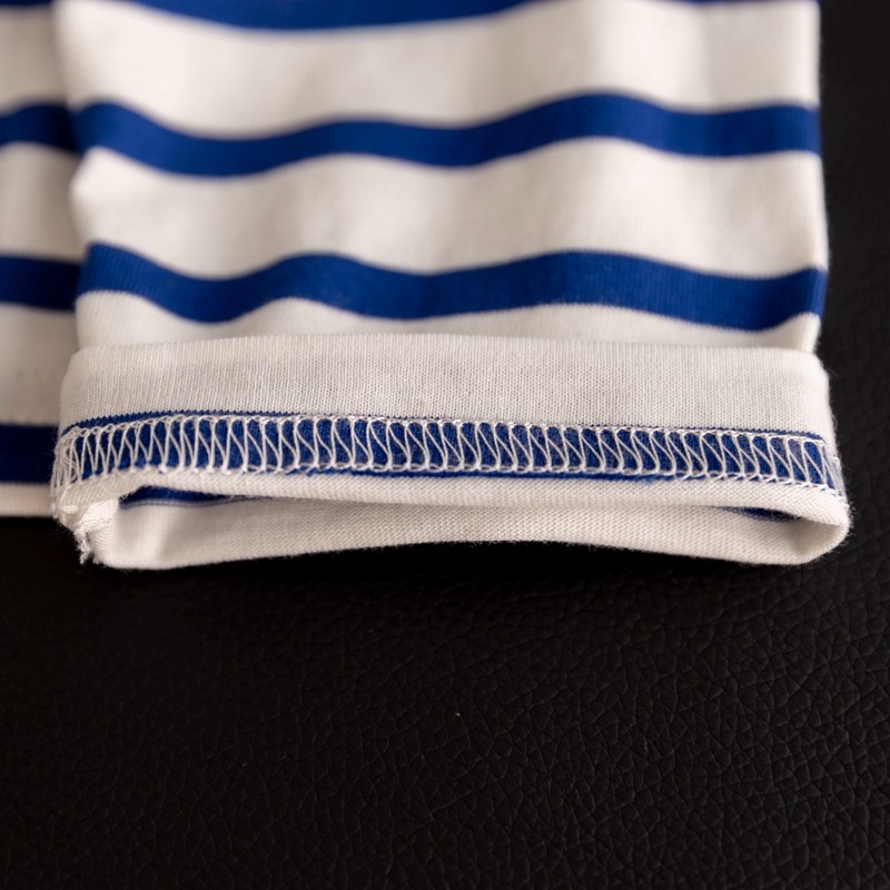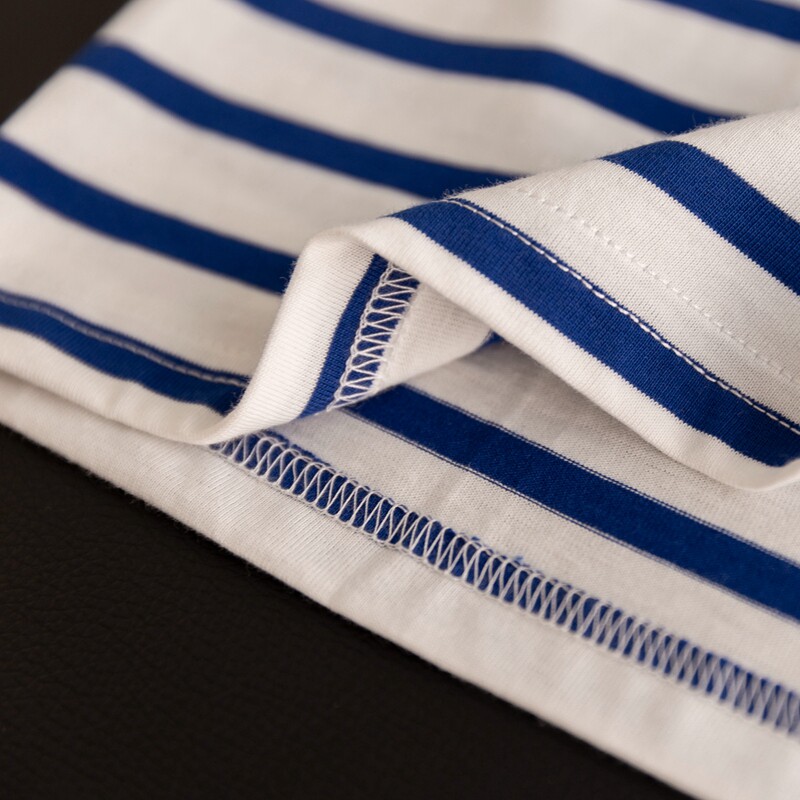 📚 外贸出口高端纯棉蓝白条纹T恤女长袖清新减龄内搭打底衫秋季上衣