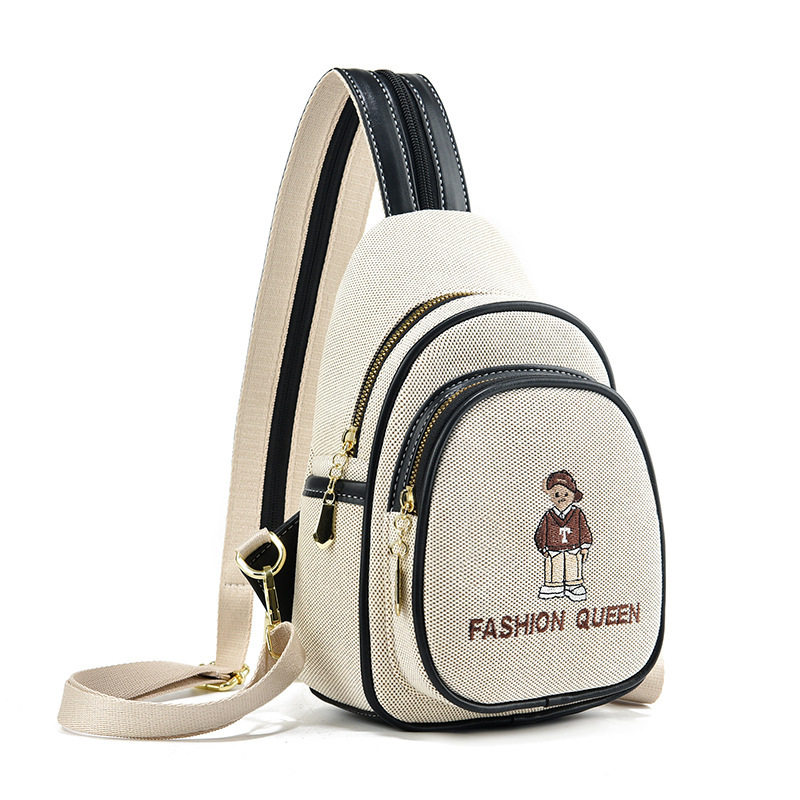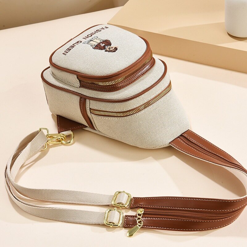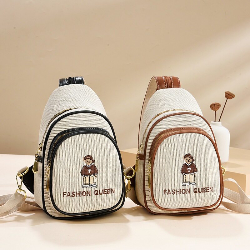 📚 【世臣】卡通双肩包2025新款时尚休闲胸包女小熊刺绣单肩斜挎包