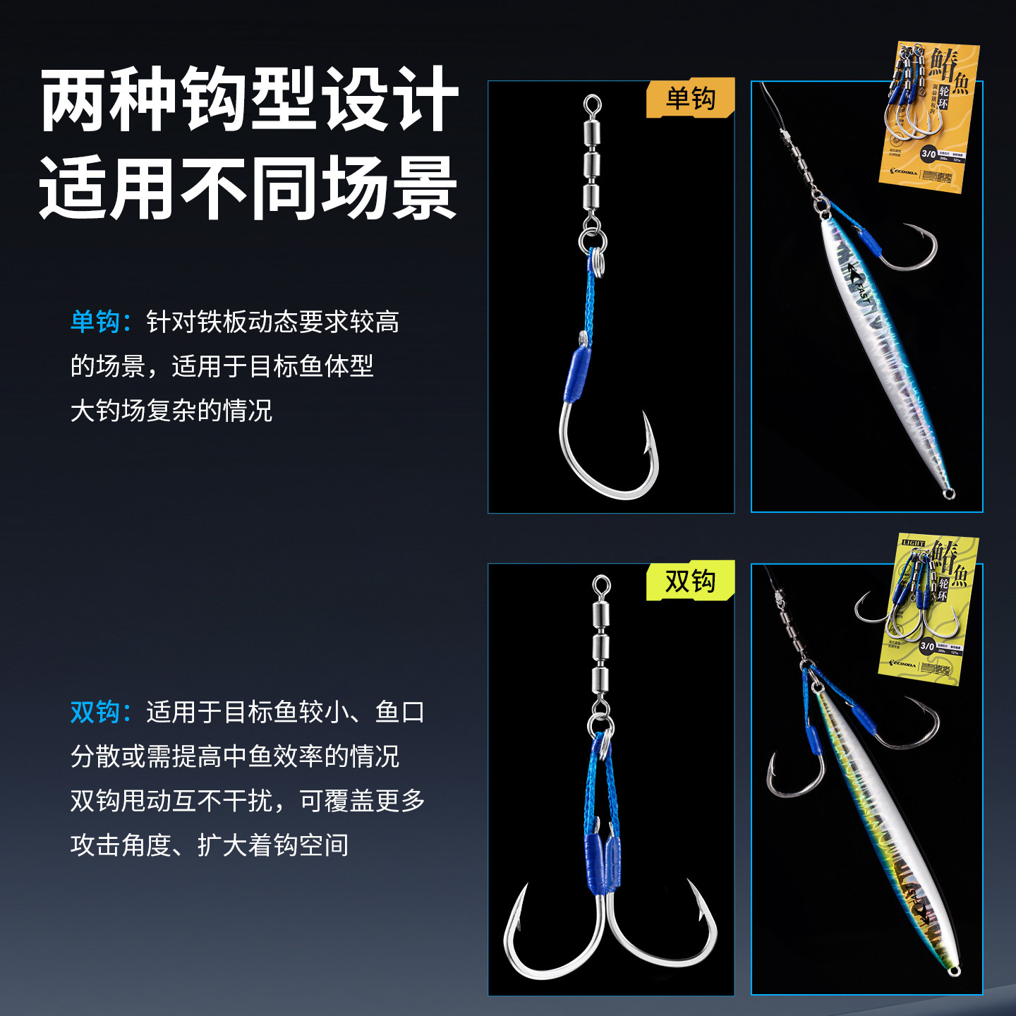 📚 伊酷达青蓝轮环鰆鱼钢丝铁板钩带转环慢摇快抽钩近海船钓钩绑线钩