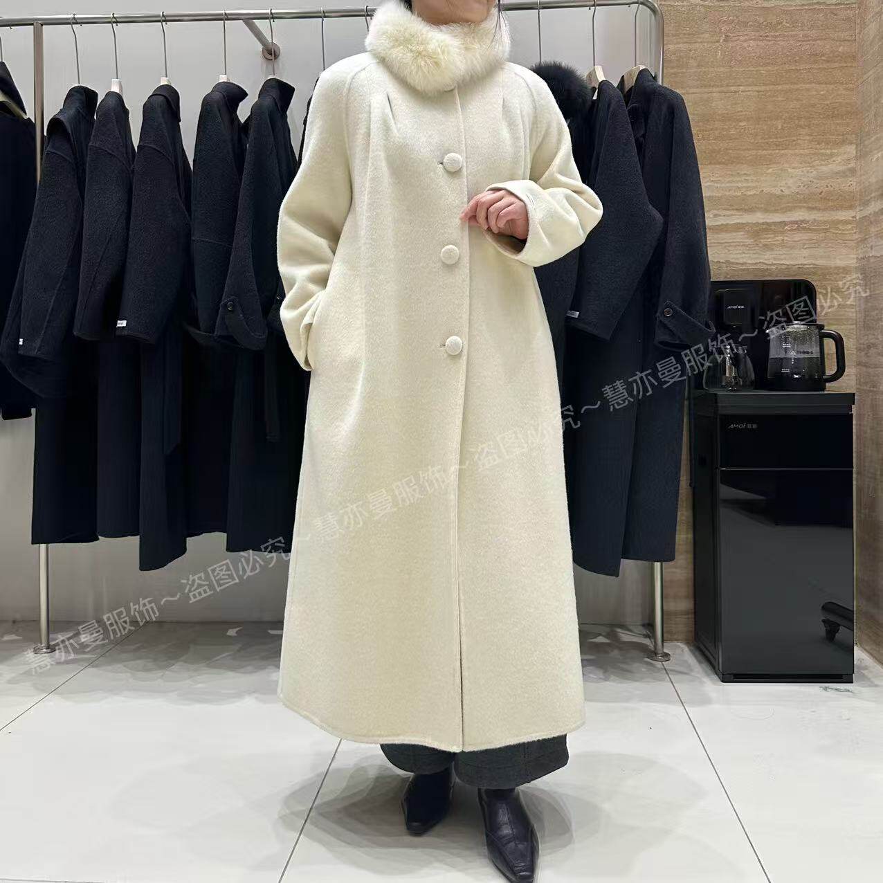 📚 (上新)新款开叉大包扣狐狸毛围脖羊毛大衣2025韩版气质毛呢外套
