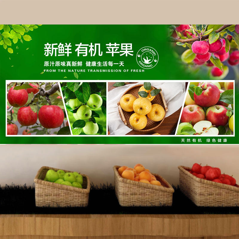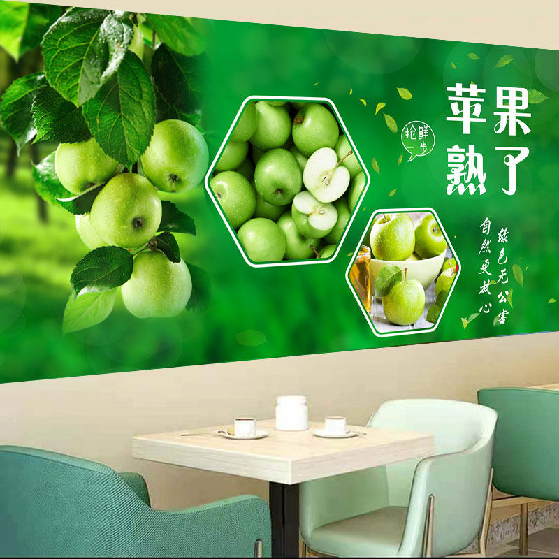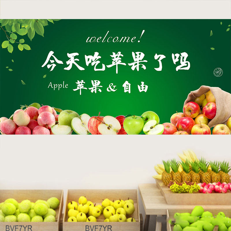 📚 富士国光青苹果店铺氛围墙贴纸超市水果店装饰贴画新鲜水果海报