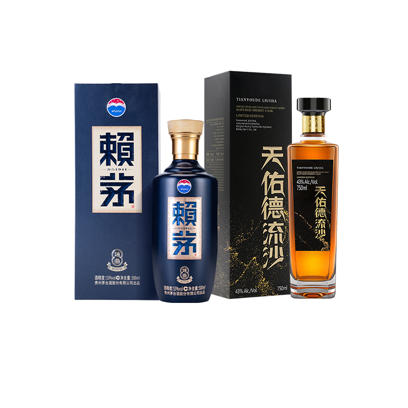 📚 贵州赖茅端曲2.0雅韵版53度500ml+天佑德青稞白酒750ml 酒水组合