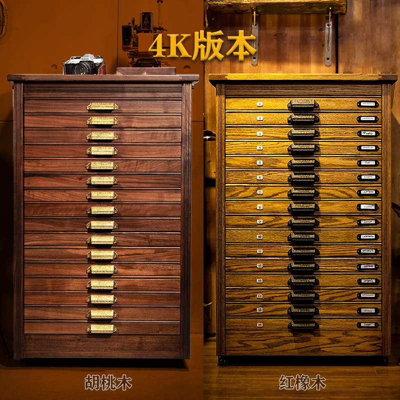📚 美国野望图纸柜实木首饰收纳柜印章收藏复古大容量展示柜4K版带锁