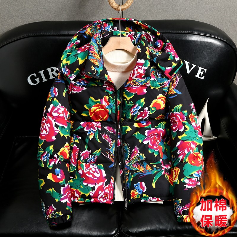 📚 东北大花棉袄男女同款中国牡丹花冬季棉衣服加厚保暖喜庆外套棉服