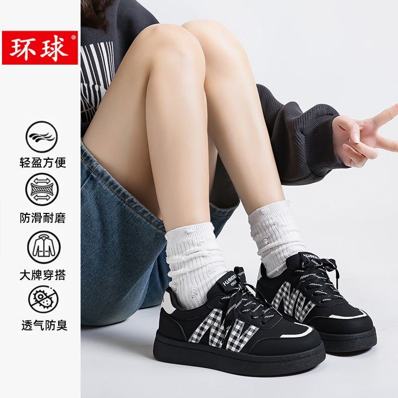 📚 环球小香风格子纹小白鞋女款2026春秋新款百搭学生校园风休闲板鞋