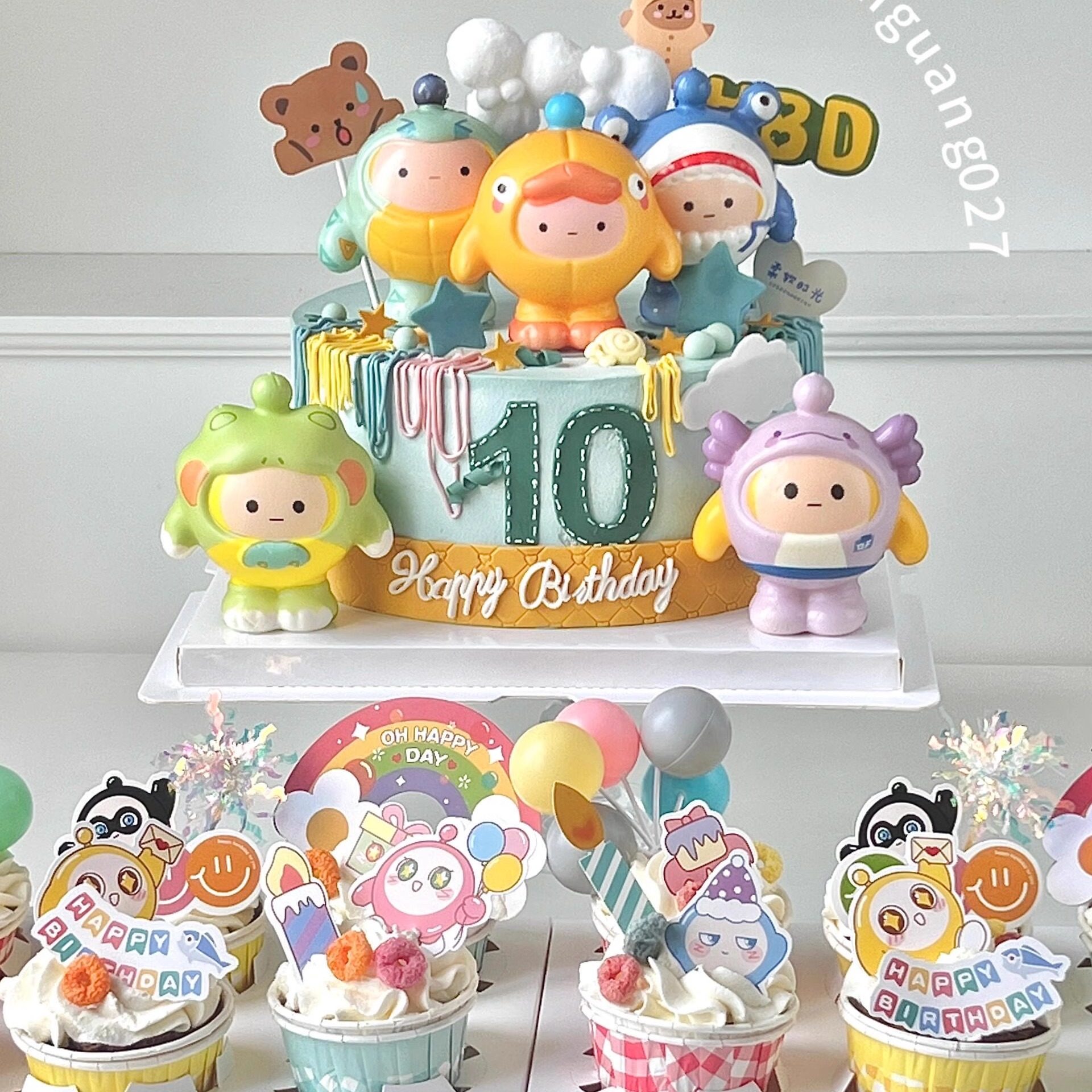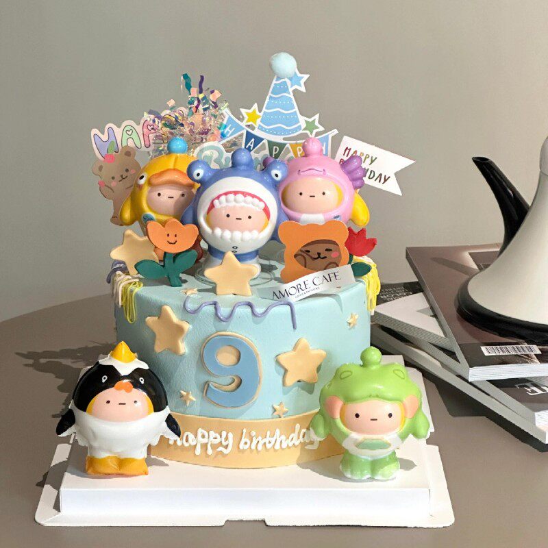 📚 网红爆款蛋仔小熊盲盒主题蛋糕装饰烘焙摆件可爱儿童男孩生日插件