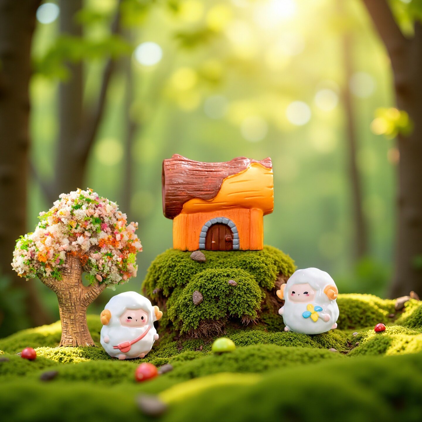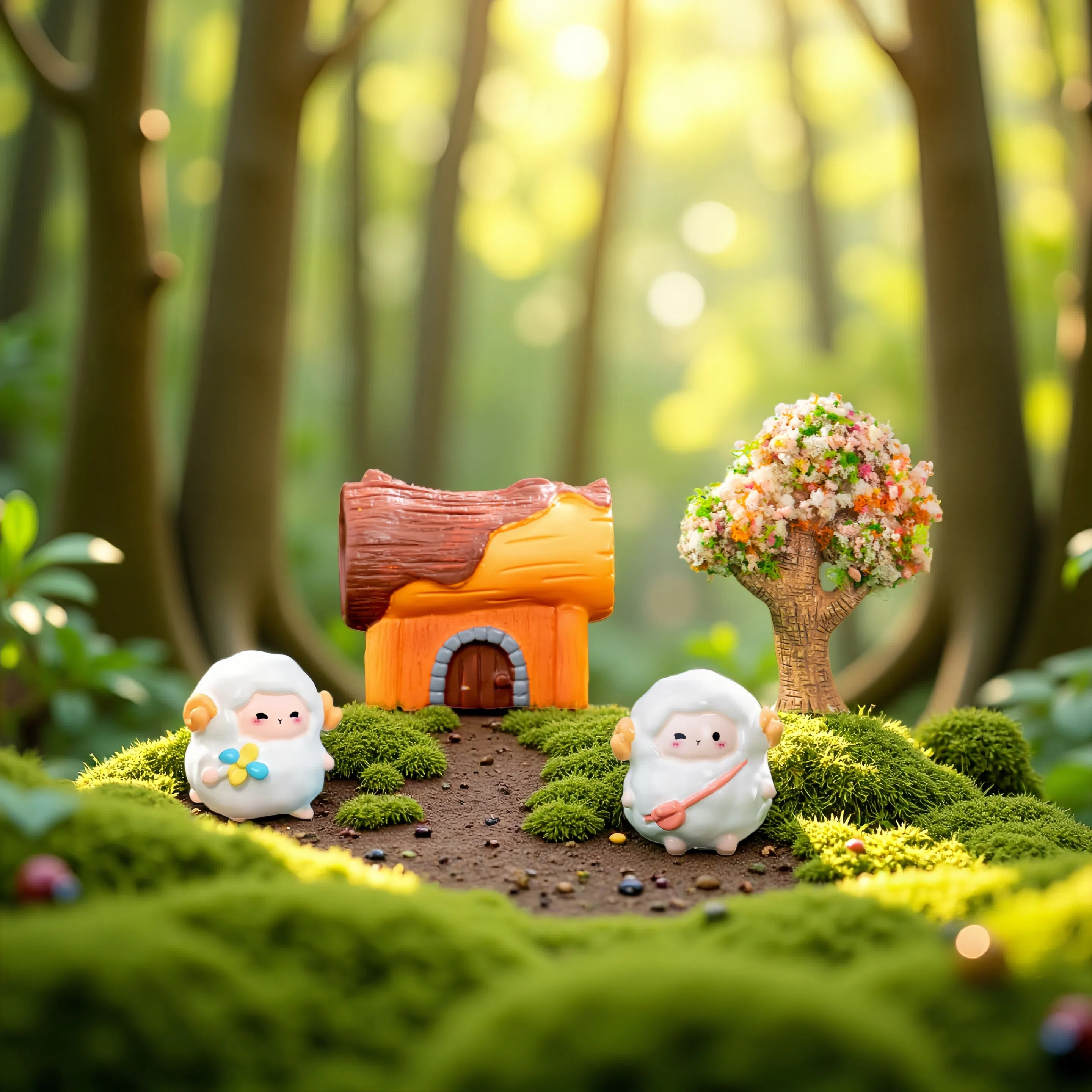 📚 创意可爱小绵羊公仔萌粒园艺盆景苔藓造景装饰品娃娃屋微景观摆件