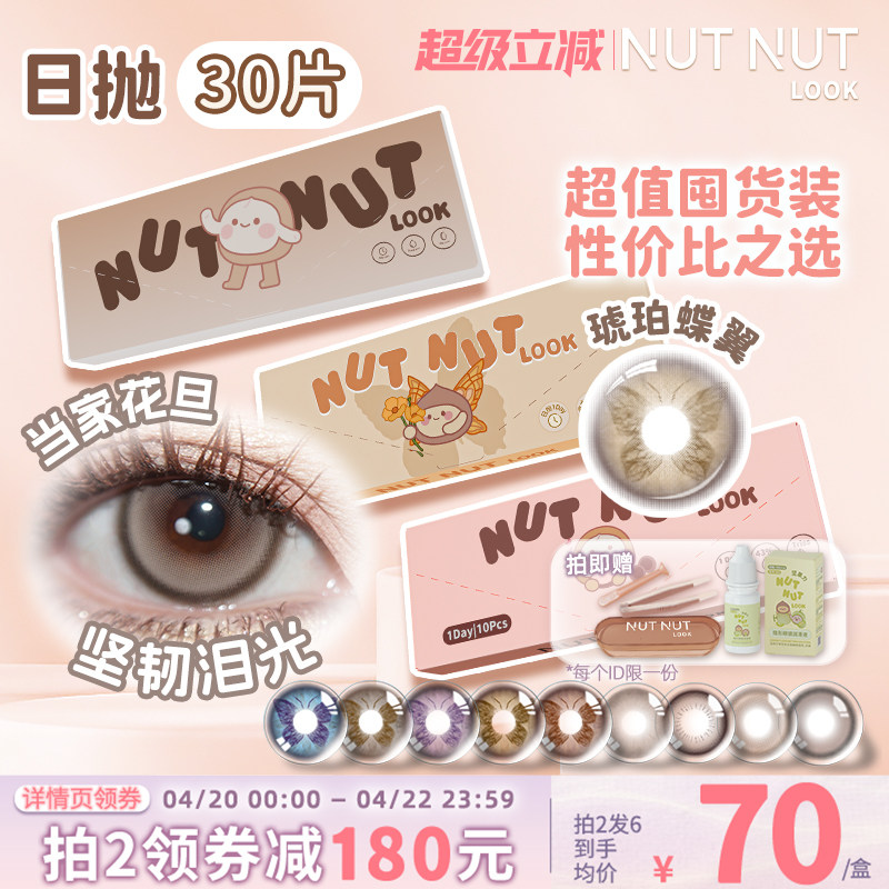 📚 定轴囤货上新!坚果力美瞳日抛30片爆款坚韧泪光琥珀蝶翼隐形眼镜