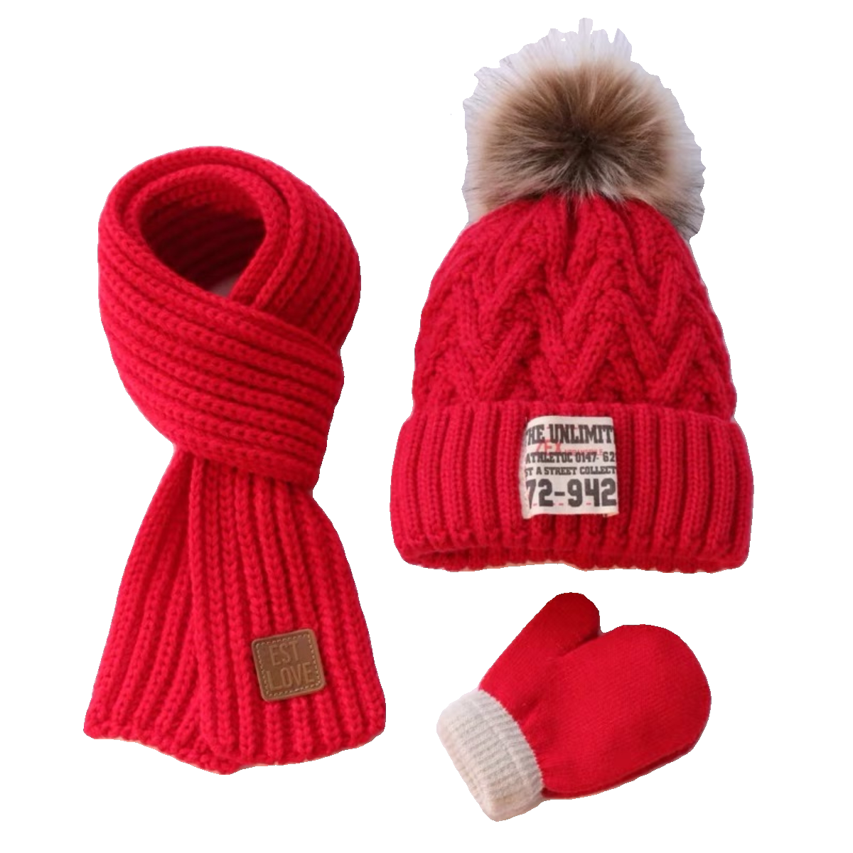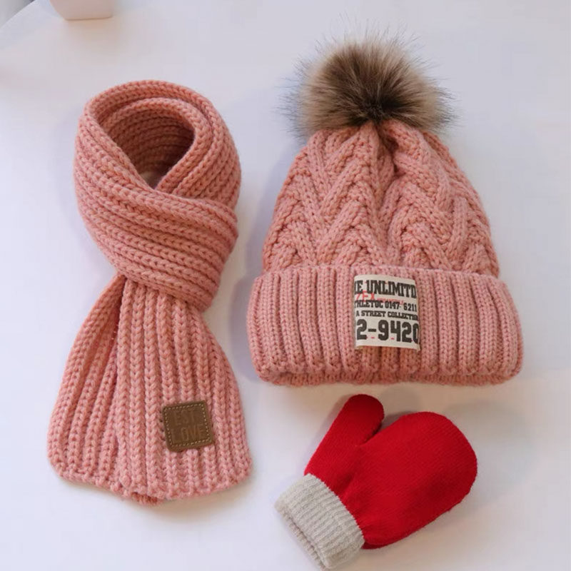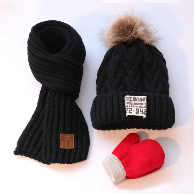 📚 宝宝帽子秋冬季儿童加绒帽子围巾手套三件套男童女童针织毛线帽韩