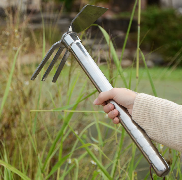 📚 不锈钢小锄头农具种菜种花工具农用翻地开荒松土园艺钓鱼锄头耙镐