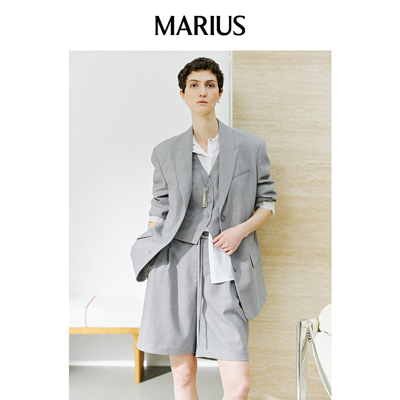 📚 MARIUS"Emate通勤系列"古巴西装云柔羊毛纱通勤西服马甲短裤套装