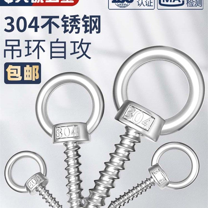 📚 304不锈钢吊环j螺丝钉带圆环自攻钉挂钩自钻羊眼圈型自攻 音响螺