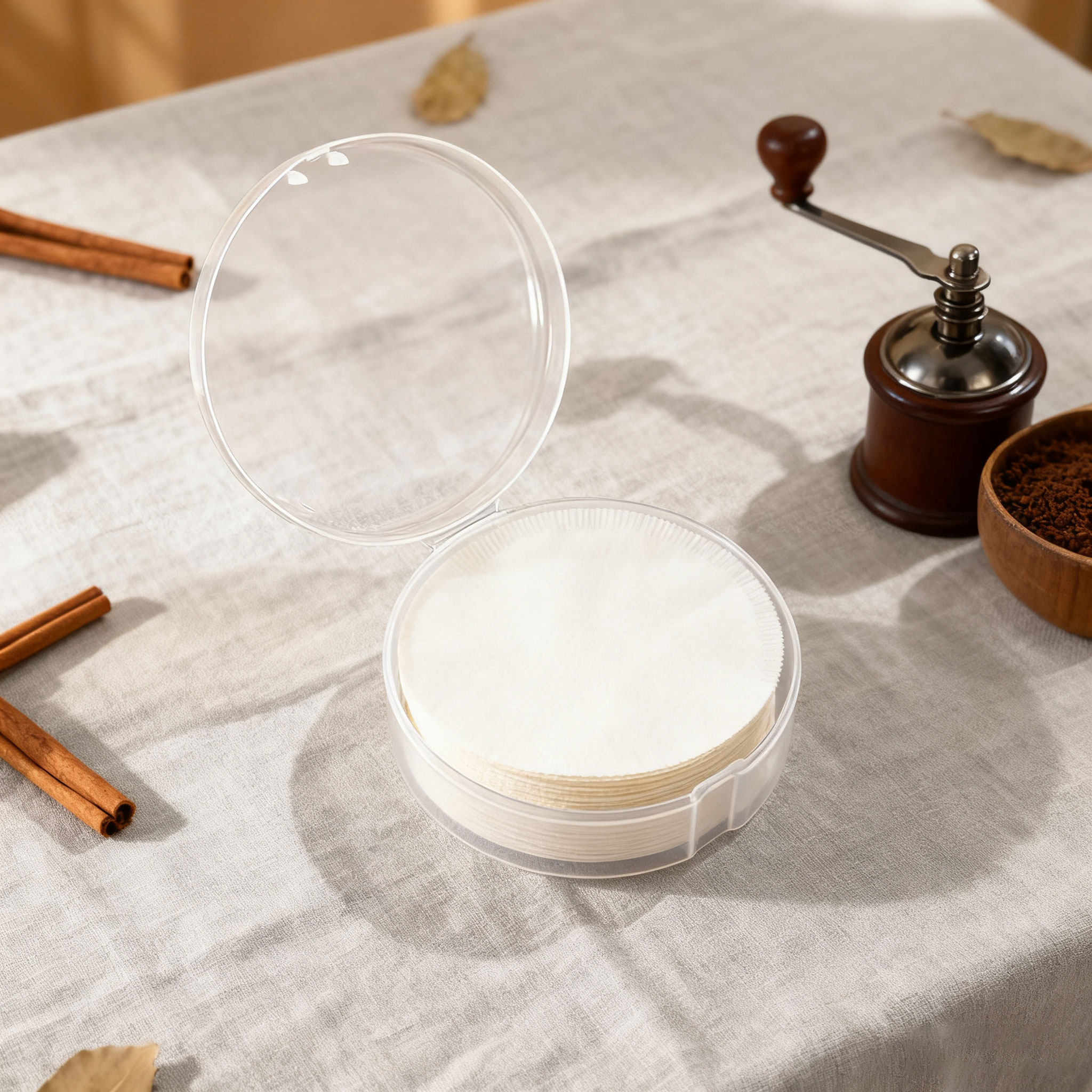 📚 一次性圆形咖啡滤纸51/5456/58/60mm收纳盒摩卡壶手柄滤纸防潮