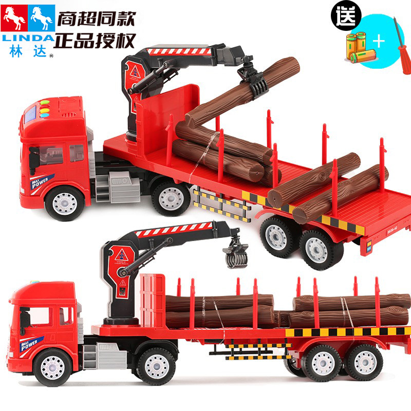 📚 会讲故事林达大号工程木材运输玩具车声光儿童抓木运木车男孩玩具