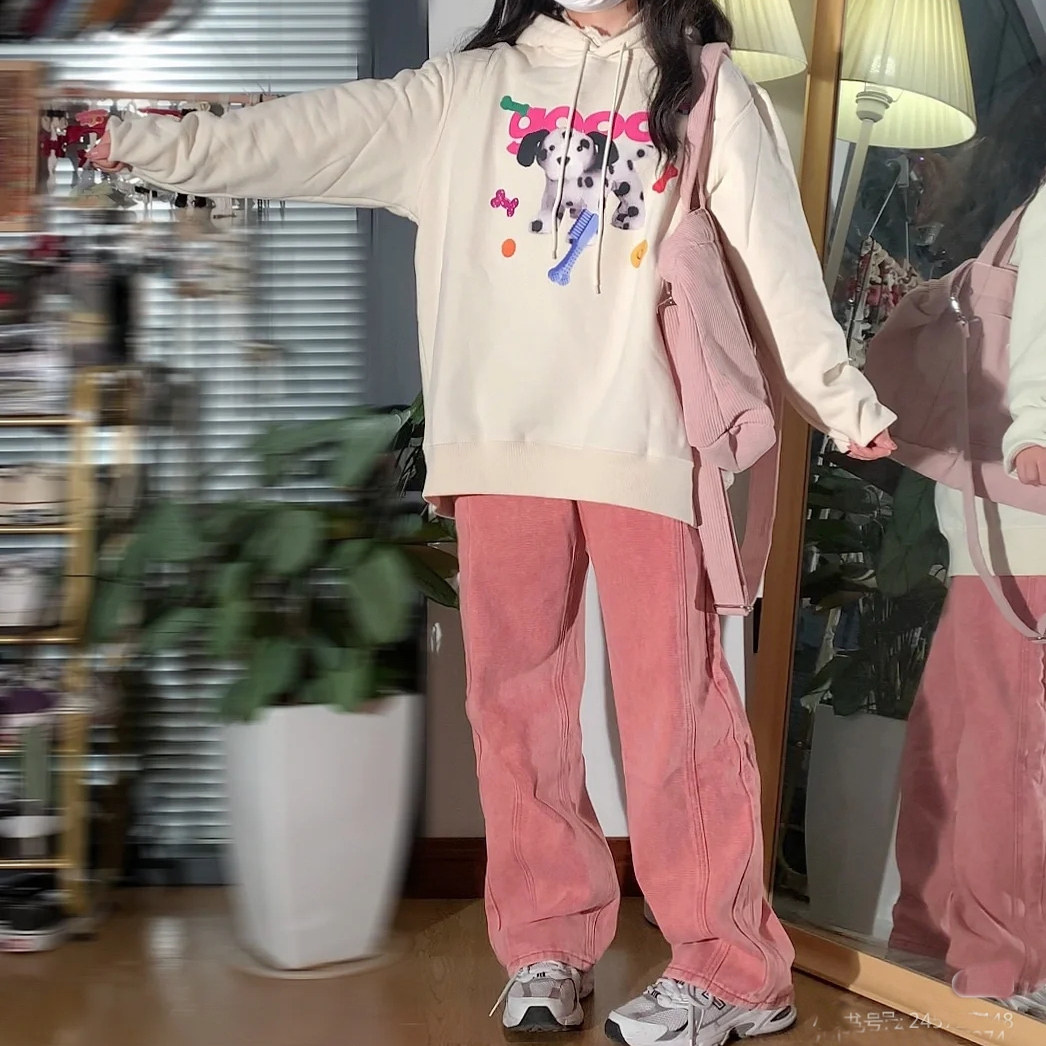 📚 TF家族张桂源同款连帽卫衣小狗印花秋冬男女加绒宽松学生情侣外套