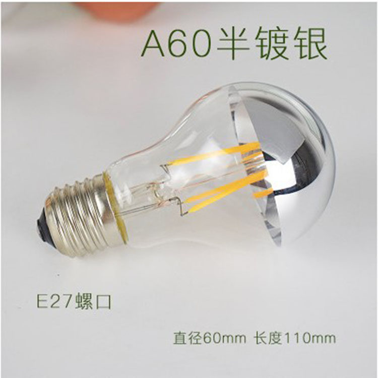 📚 led爱迪生节能A19半电镀银无影灯泡2700k暖光e27反射无影光源a60