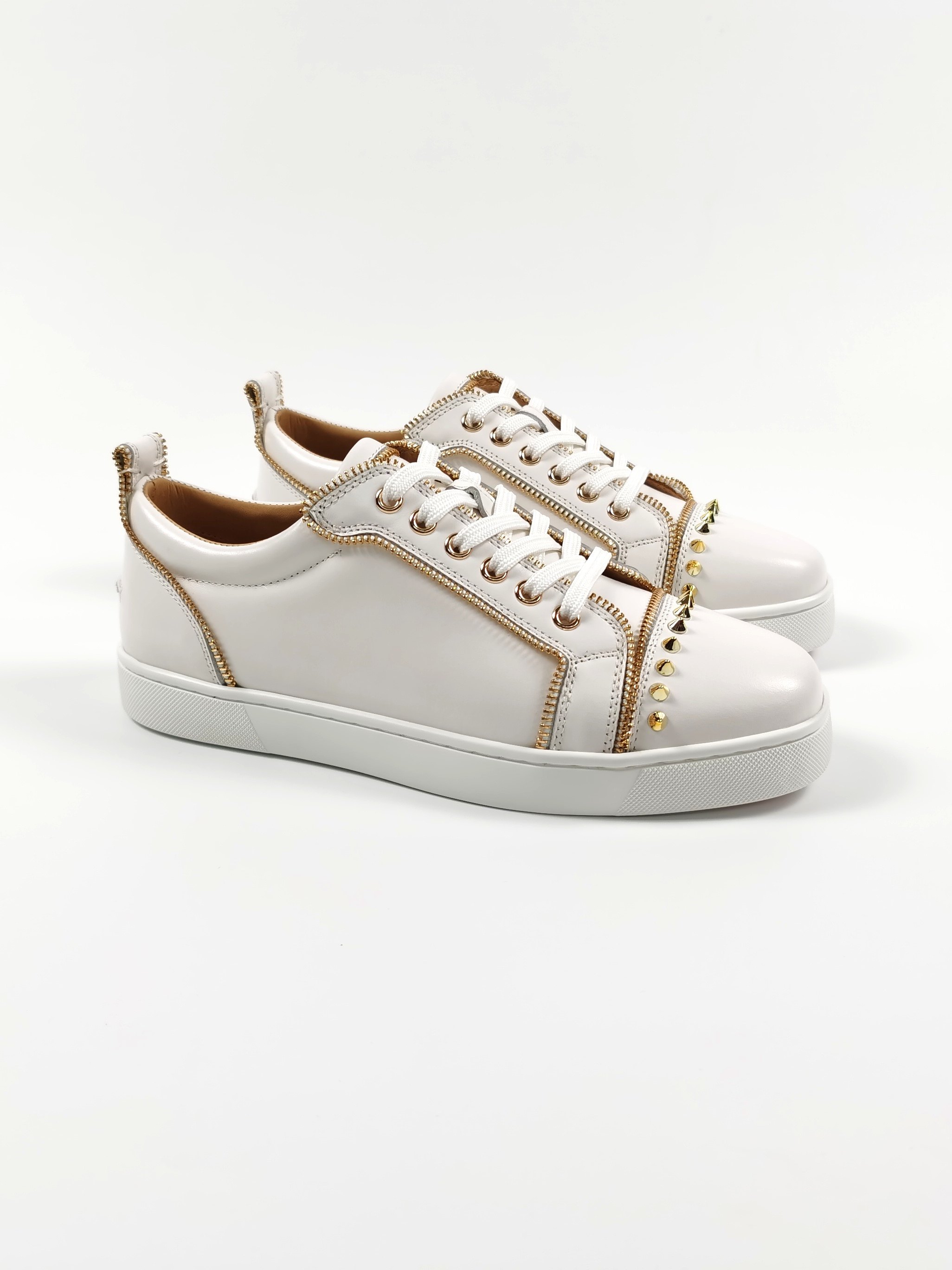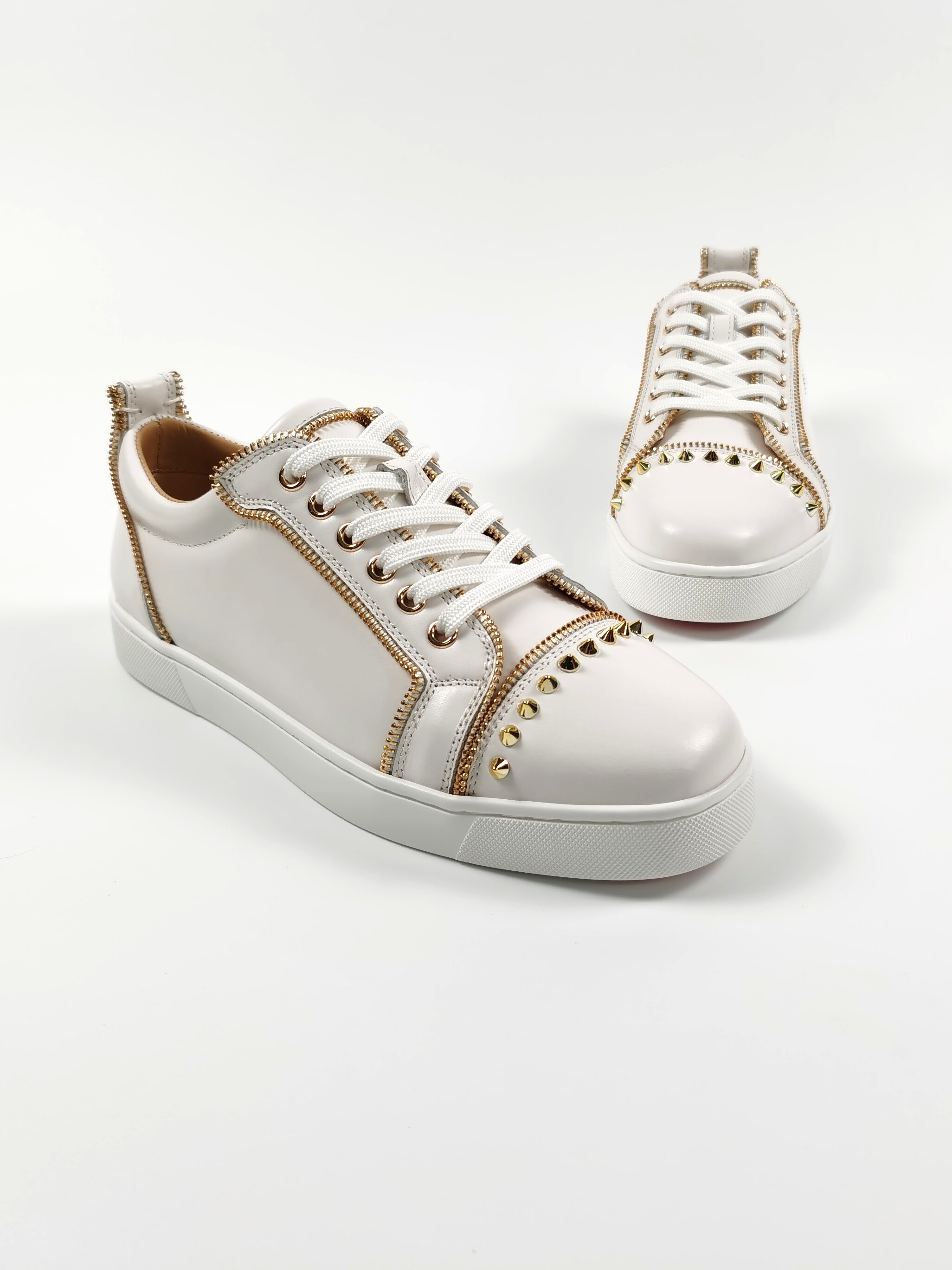 📚 欧洲站新CL金色拉链铆钉低帮男鞋时尚休闲鞋男女小白色系带板鞋潮