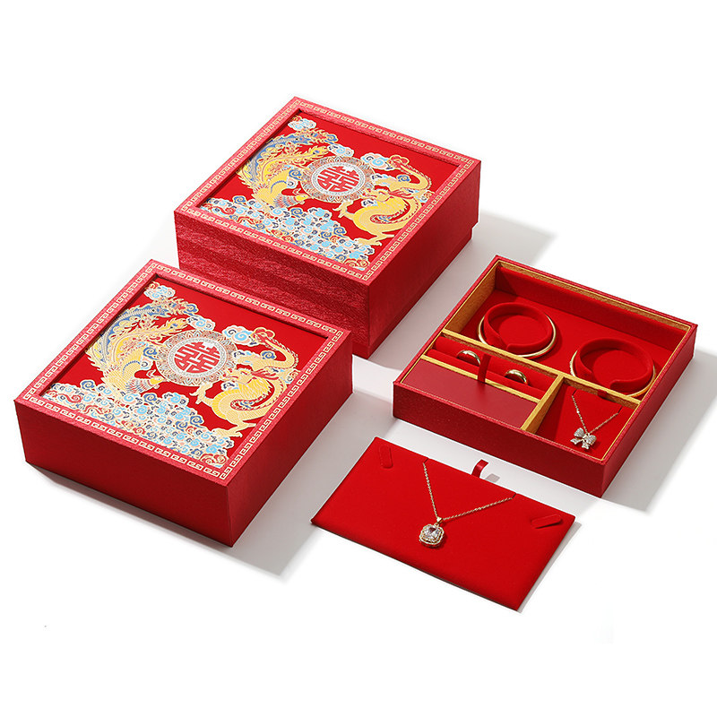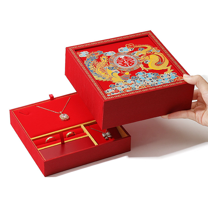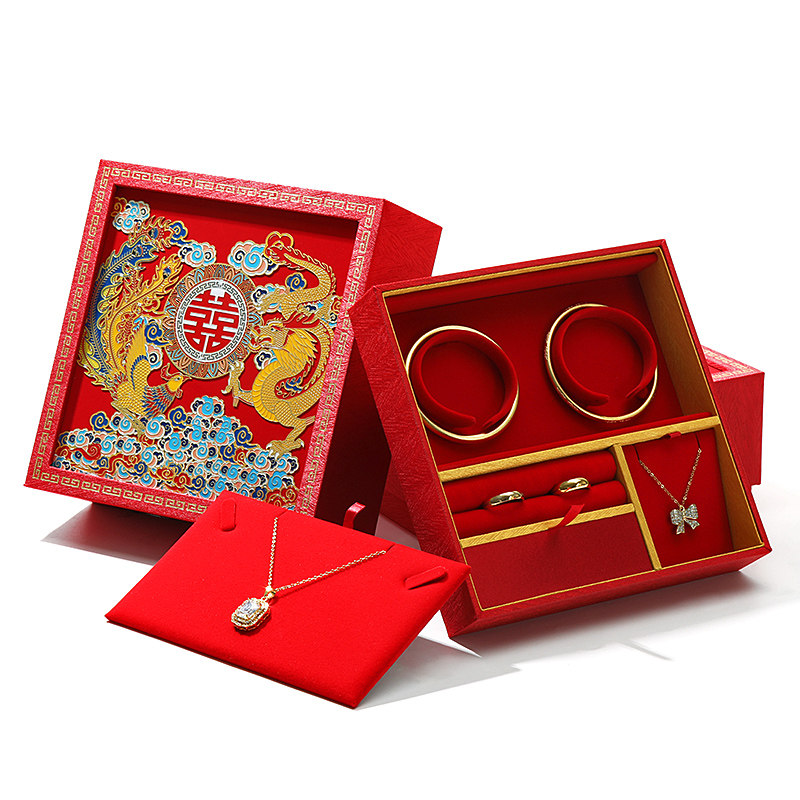 📚 婚礼五金首饰盒喜庆婚嫁双手镯收纳盒戒指项链耳钉三金收纳盒礼盒