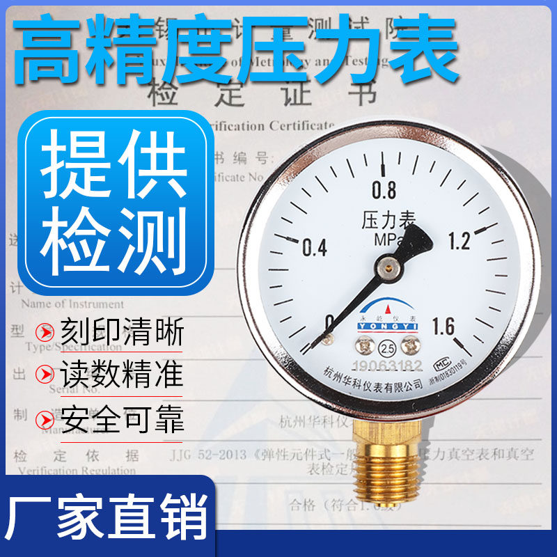 📚 华科Y60压力表气压表耐震轴向油压表含合格证水压表Y100可代检测