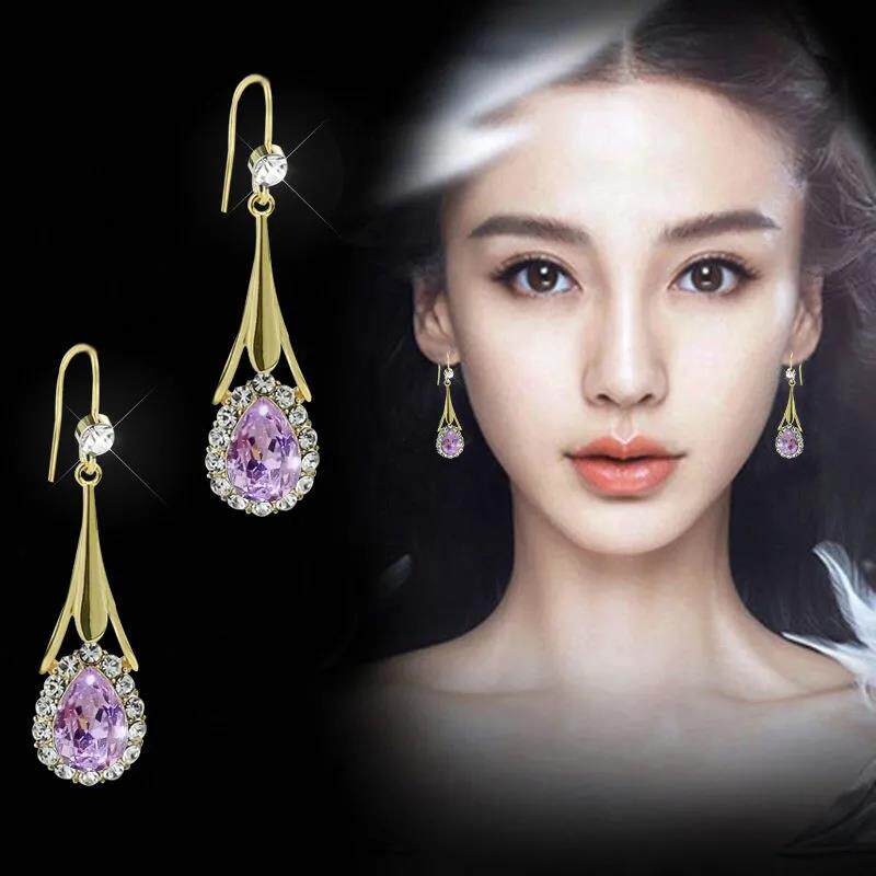 📚 S925耳环气质水晶之恋圆脸网红耳饰潮瘦脸女时尚耳坠新款2021年