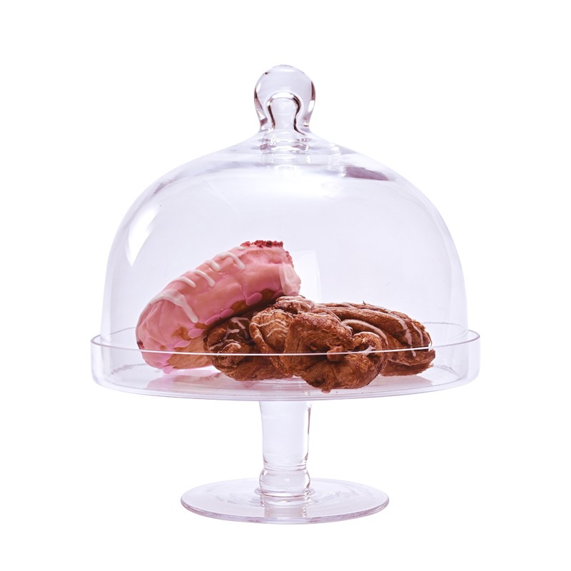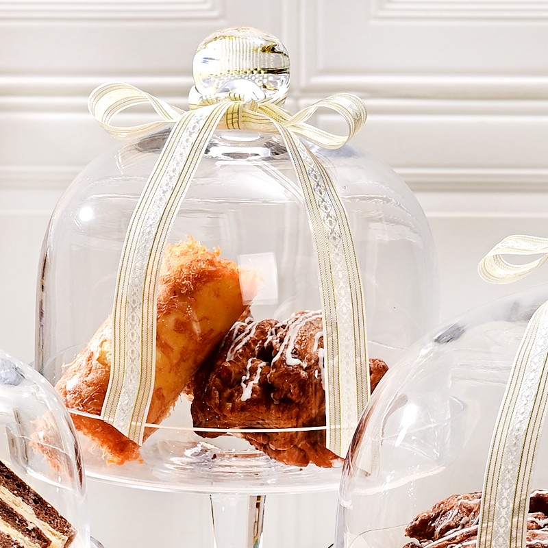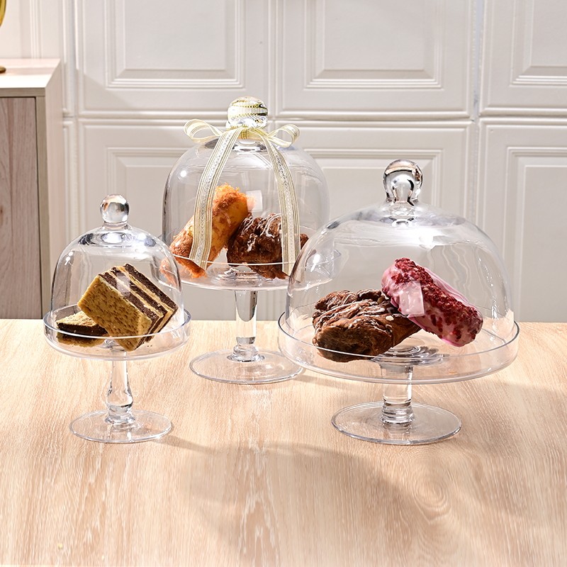 📚 欧式大号蛋糕托盘透明玻璃罩高脚带盖面包水果试吃盘甜品台展示架