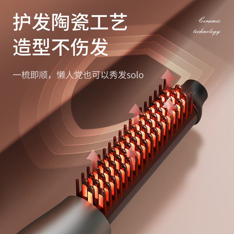 📚 跨境新款懒人直发梳卷直两用卷发棒女一梳即顺调温直发器欧规美规