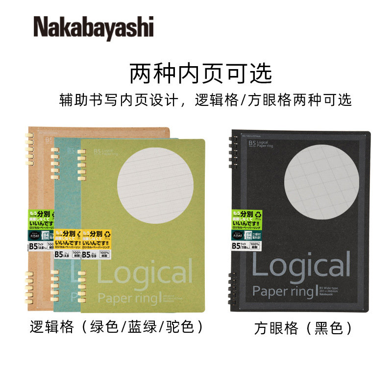 📚 nakabayashi仲林 笔记本简约大学生a4笔记本文具加厚方格本B5笔记本子记事本a5小本子笔记本格子网格本线圈本
