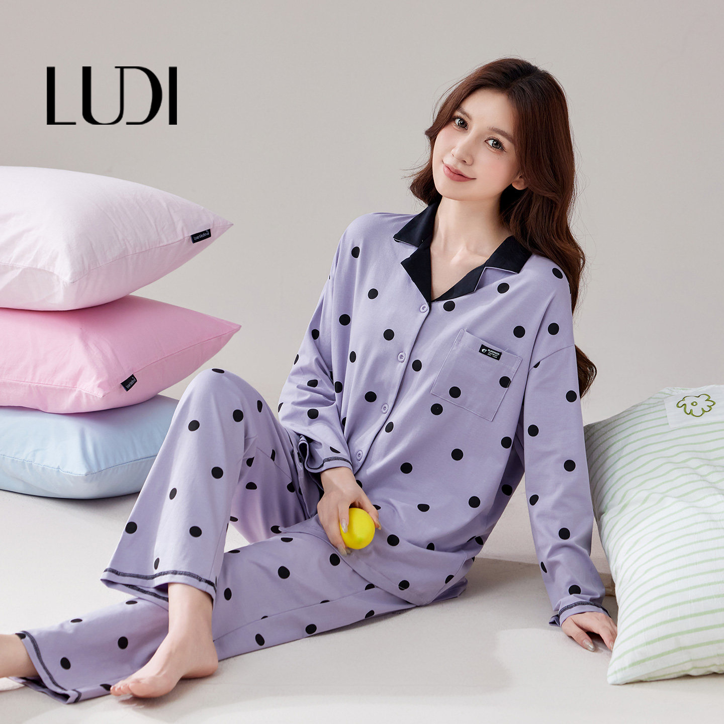 📚 露迪尚品女士春秋甜美翻领睡衣家居服长袖长裤女LDC257269