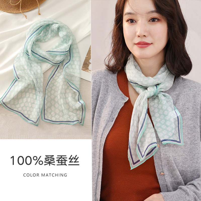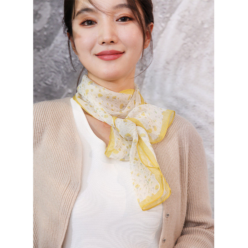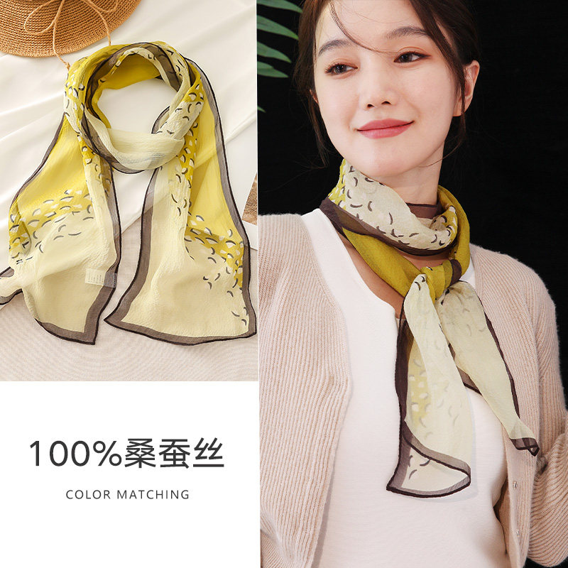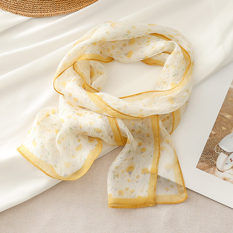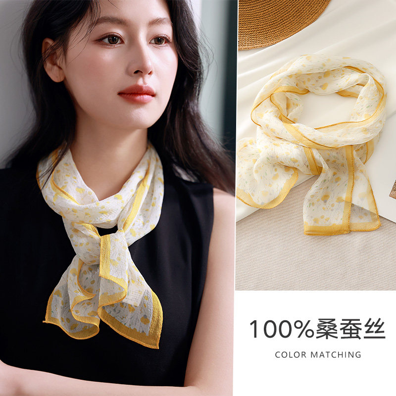📚 黄色真丝长条丝巾系脖小飘带纱巾女士春夏高级感桑蚕丝窄围巾薄款