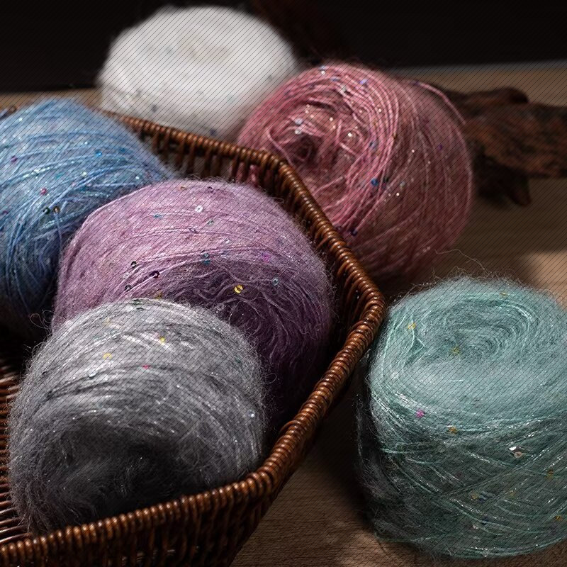 📚 小亮片马海毛合股羊驼绒中细线羊毛线手工编织diy钩针线围巾毛衣
