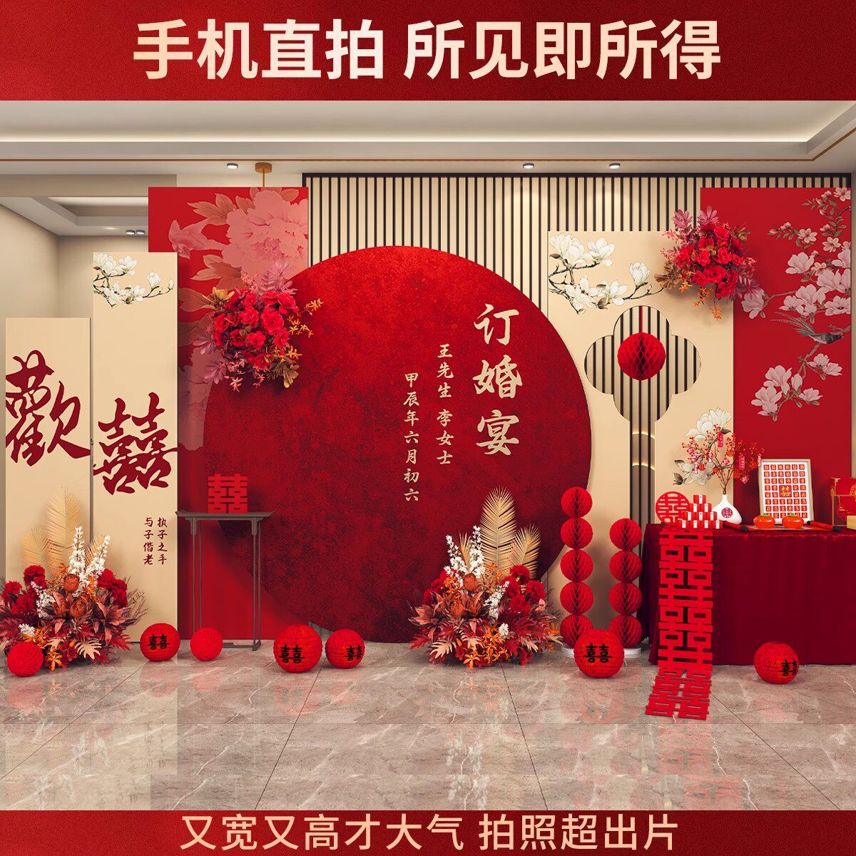 📚 新中式订婚宴布置装饰立牌高级感定亲摆台全套酒店客厅拍照kt板